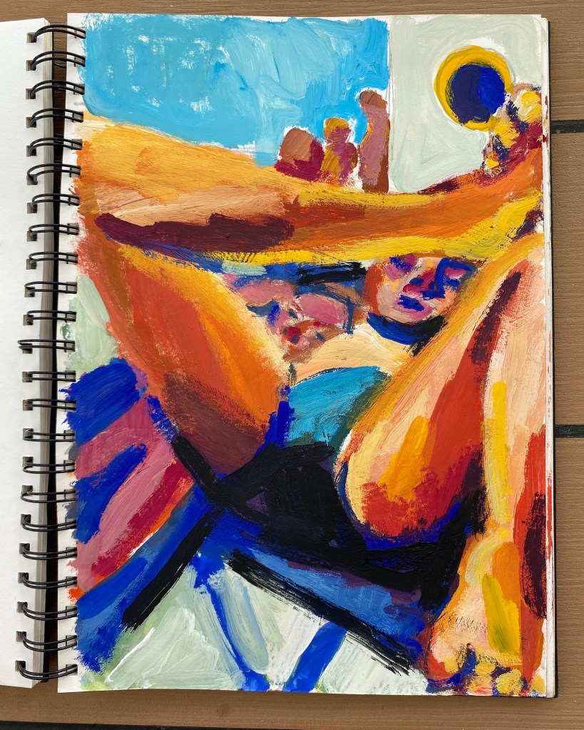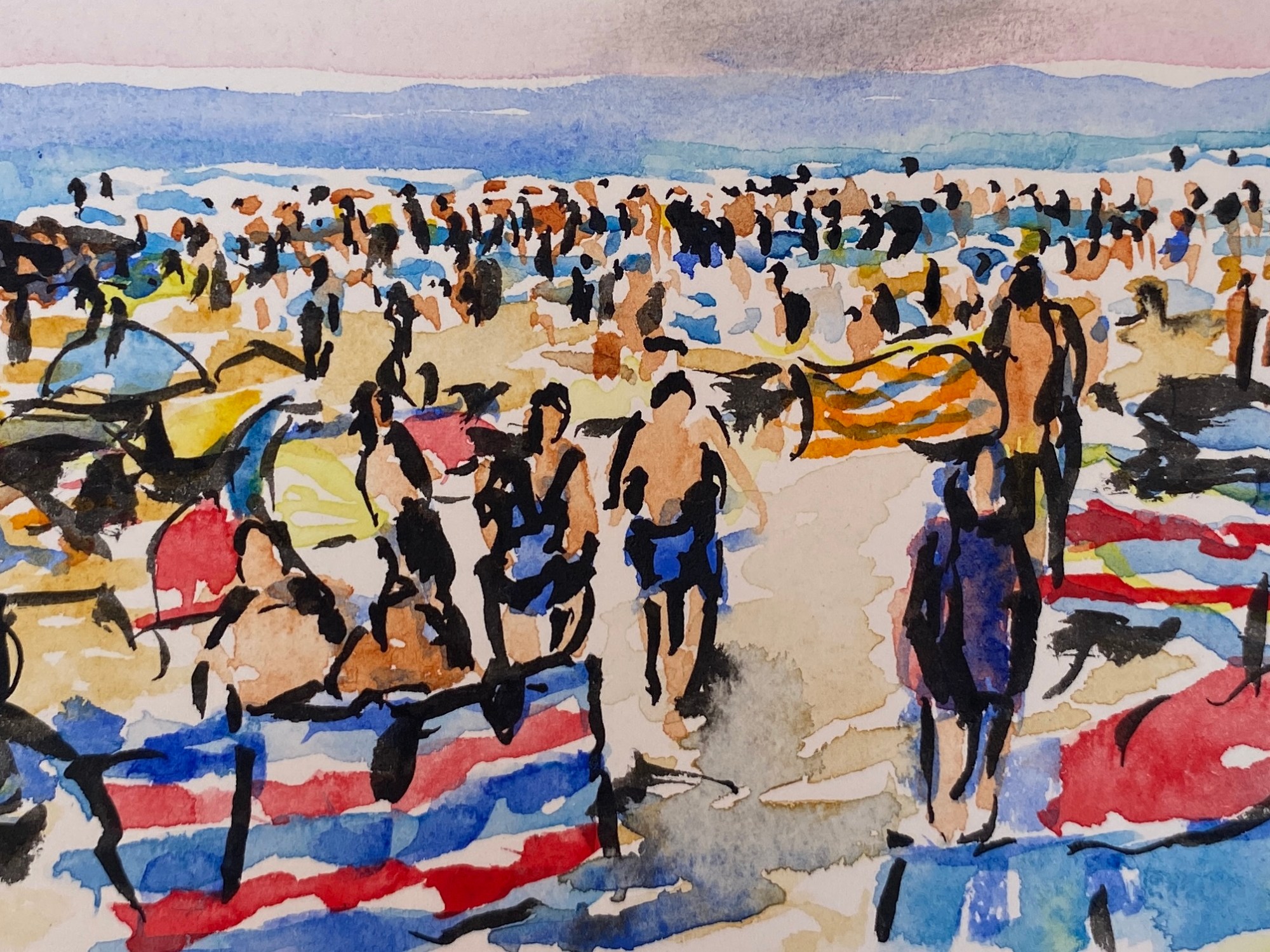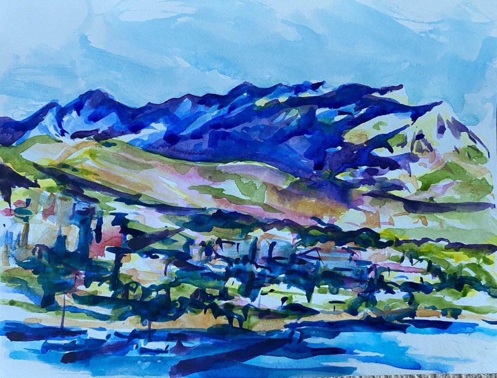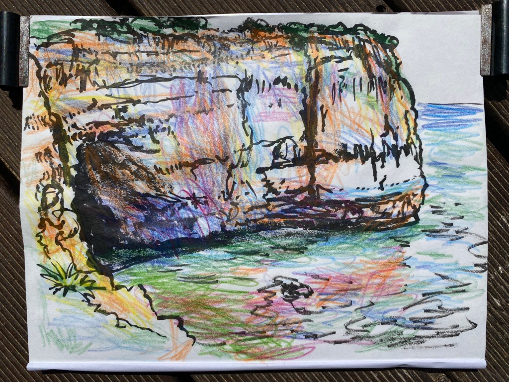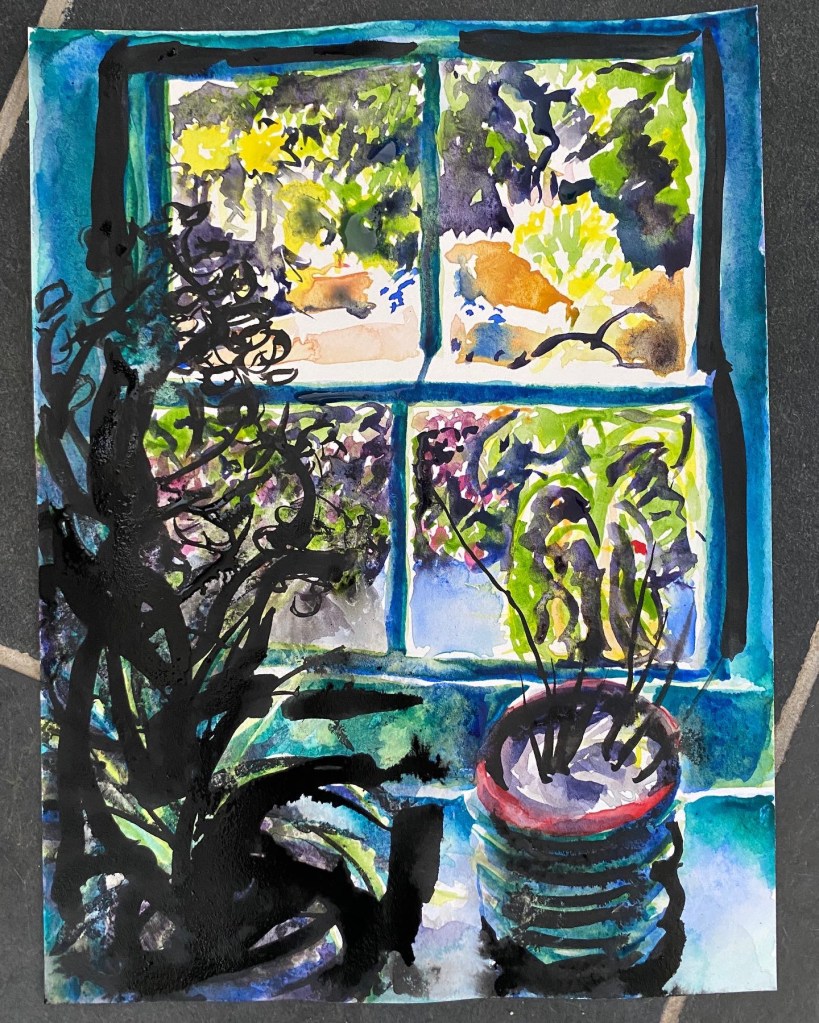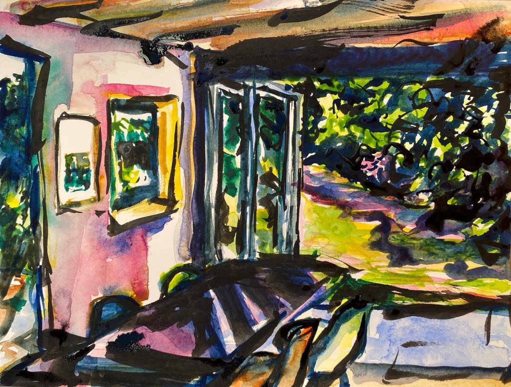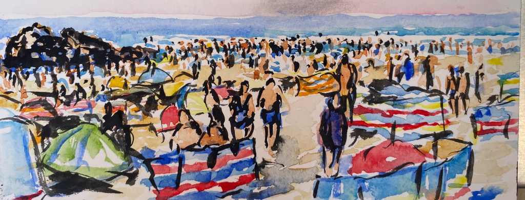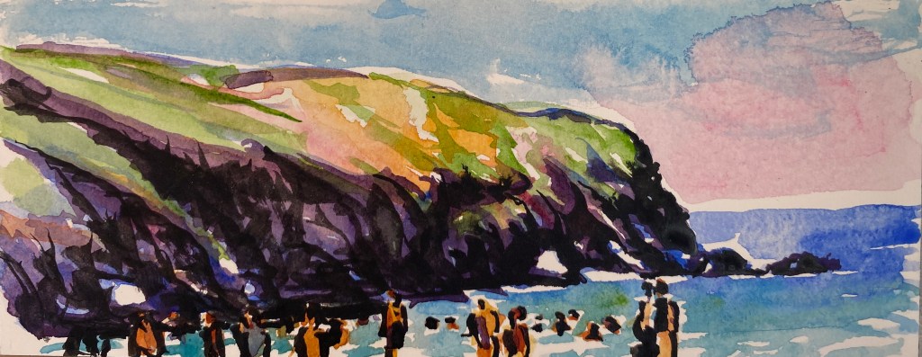 ‘Window from the Old Schoolhouse’, watercolour and ink on Arches watercolour paper, 21cm x 30cm, 07/08/2022. Private collection.‘Open Patio Doors on the Garden’, watercolour and ink on Arches watercolour paper, 21cm x 30cm, 08/08/2022. Private collection.‘Perranporth Bay’, watercolour and ink on 300gsm Arches watercolour paper, 23cm x 31cm. 09/08/2022. Private collection. ‘Perranporth Bay’, watercolour and ink on 300gsm Arches watercolour paper, 23cm x 31cm. 09/08/2022.‘Poldhu Cove’, watercolour and ink on 300gsm Arches watercolour paper, 10cm x 25cm, 10/08/2022. ‘Poldhu Cove’, watercolour and ink on 300gsm Arches watercolour paper, 10cm x 25cm, 10/08/2022. ‘Perranporth Beach Crowd, ‘ watercolour and ink on 300gsm Arches watercolour paper, 10cm x 25cm, 13/08/2022‘Napoli from the Norwegian Epic’, watercolour and ink on 300gsm Arches watercolour paper, 23cm x 31cm. 17/08/2022‘Palma Cathedral from the Norwegian Epic’, watercolour and ink on 300gsm Arches watercolour paper, 10cm x 25cm, 20/08/2022‘Residential Palma from the Norwegian Epic’, watercolour and ink on 300gsm Arches watercolour paper, 10cm x 25cm, 20/08/2022‘Ajaccio from the Norwegian Epic’, watercolour and ink on 300gsm Arches watercolour paper, 21cm x 30cm, 22/08/2022‘Funchal, Madeira from the Marella’, watercolour on 250gsm sketchbook paper. 21cm x 60cm, 06/04/3023‘Unusual Pose seen through the Legs’, gouache on 250gsm sketchbook paper, 21cm x 30cm, 09/04/2023‘Las Palmas Harbour, Gran Canaria’, watercolour on 250gsm sketch pad paper, 30cm x 21cm, 10/04/2023‘The Port at Las Palmas, Gran Canaria’, watercolour on 250gsm sketchbook paper, 21cm x 30cm, 10/04/2023‘Tivoli, Carvoeiro’ ink and watercolour on 220gsm cartridge, A4. 12/08/23‘Tivoli, Carvoeiro’ ink and pencil crayon on Hahnemuhle Sumi-e rice paper, A4. 12/08/23. ‘Tivoli, Carvoeiro’, ink and watercolour on 220gsm cartridge paper, 30cm x 21cm, 13/08/23‘Praia Fluvial de Ortigal em Arganil’, gouache on canvas, 45cm x 60cm. 18/08/23
