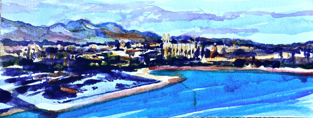 The watercolour paintings in the ‘Holiday Paintings’ folder are £180 unframed and £250 professionally framed.