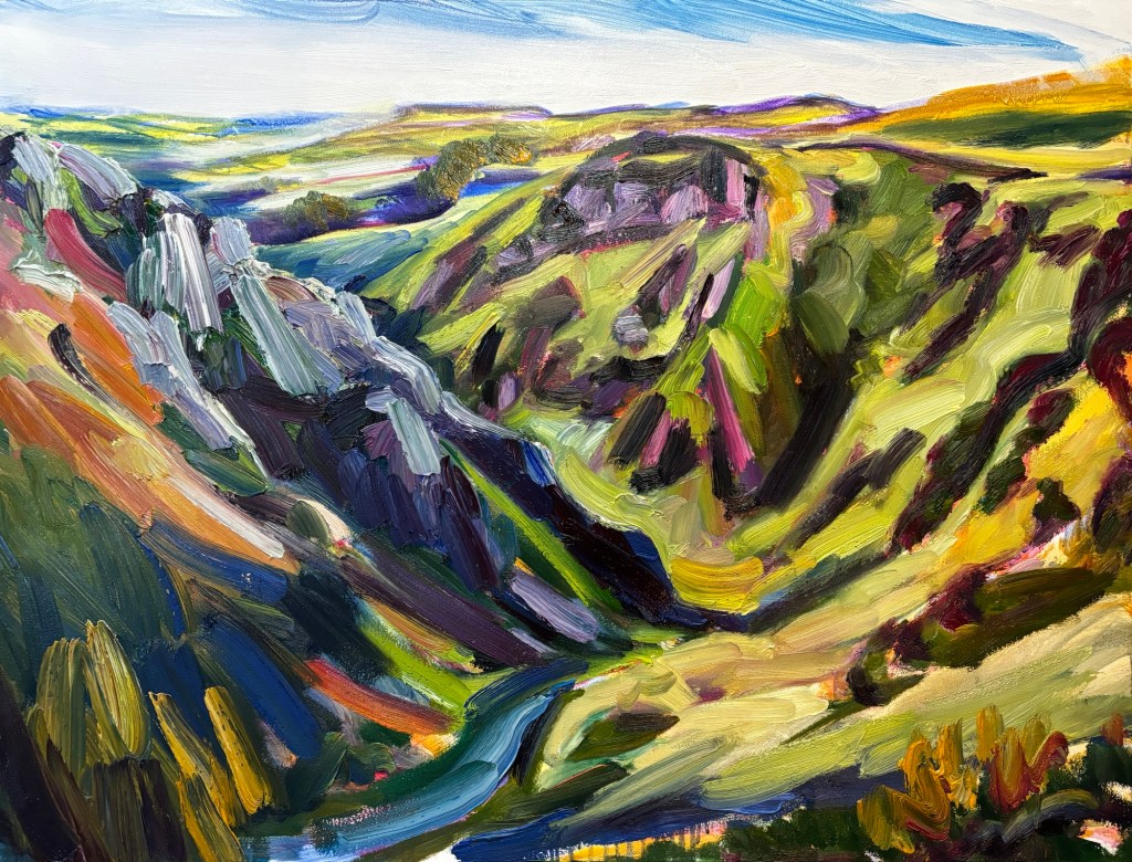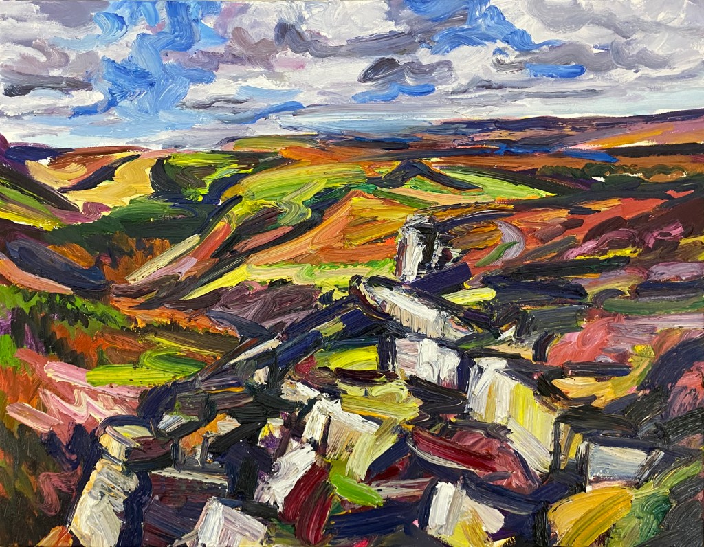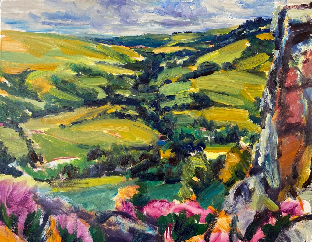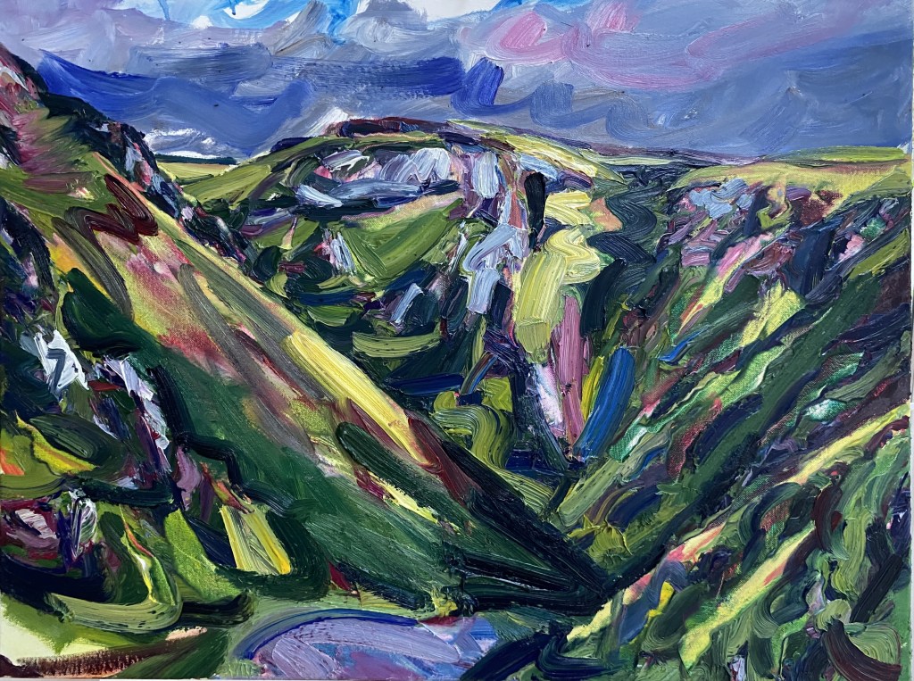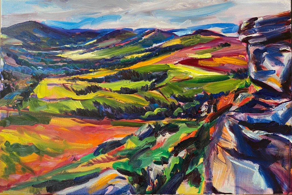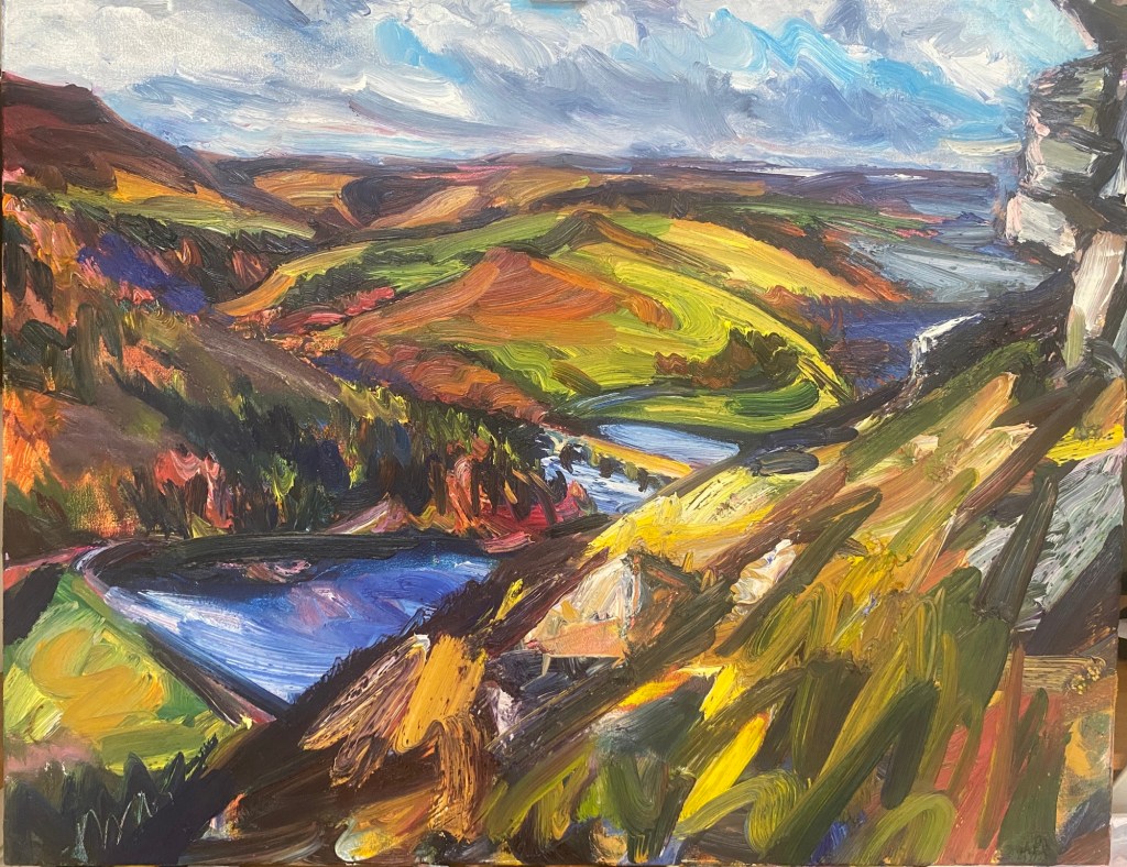 ‘Winnats Pass towards Hope Valley’, oil on Loxley Mayfair canvas, 100cm x 76cm, 28/11/24. Private collection ‘Monsal Head after Snow’, oil on Loxley Mayfair canvas, 100cm x 76cm, 21/11/24. ‘Stanage Edge from Balcony Cave’, oil on Loxley Mayfair canvas, 90cm x 70, 14/11/24.‘Curbar Village from The Edge’, oil on canvas, 70cm x 90cm, 25/10/24 ‘Chatsworth framed with Autumn Leaves’, oil on canvas, 62cm x 91cm. 17/10/24‘Stanage from Black Hawk Bay’ oil on canvas, 91cm x 61cm. 10/10/24‘Millstones, Stanage’, oil on canvas, 101cm x 76cm, 28/09/2024. Private collection, New York.‘Millstones, Stanage Edge’, oil on canvas, 101cm x 76cm, 19/09/2024. Private collection‘Heather before Stanage Edge’, oil on canvas, 100cm x 76cm. 21/08/2024 Private collection. ‘Calver from Curbar Edge’, oil on canvas, 90cm x 70cm, 09/08/2024 Private collection. ‘Hope Valley from Bamford Edge’, oil on canvas, 70cm x 90cm, 23/02/2023 Private collection.‘Stanage Edge from Upper Burbage’, oil on canvas, 100cm x 76cm. 8/7/24. Private collection‘Curbar Edge’, oil on canvas, 70cm x 90cm, 15/04/2023 Private collection‘Baslow Edge from Curbar Edge, oil on canvas, 90cm x 60cm. 1/7/24 Private collection‘Chatsworth and the Derwent’, oil on canvas, 70cm x 90cm. 19/05/2023.‘Hope Valley from Stanage’, oil on canvas, 70cm x 90cm. 31/05/2023 private collection.‘Potting Shed at Hopton Hall’, oil on canvas, 80cm x 60cm. 01/07/2023. Private collection.‘Towards Hathersage from Stanage’. Oil on canvas, 70cm x 90cm. Private collection.‘Hope Valley from Stanage’, oil on canvas, 70cm x 90cm. 29/08/2023. Private collection.‘Slippery Stones, Padley Gorge’ oil on quadruple gesso primed Loxley Mayfair canvas. 50cm x 100cm, 11!09/2023‘Winnats Pass’, oil on canvas, 81cm x 61cm, 25/09/2023.‘Walkers on Stanage’, ink and acrylic on Canson watercolour paper. 150cm x 250cm. 02/10/2023‘Towards Hathersage from Stanage’, oil on canvas, 81cm x 61cm, 09/10/23 private collection‘Edale’, oil on canvas, 100cm x 40cm, 16/10/23 private collection‘Stanage Edge’, oil on canvas, 91cm x 71cm. 6/11/23 Private collection‘Stanage towards Hope Valley’, oil on canvas, 71cm x 91cm. 20/11/23. Private collection. ‘Monsal Head’, oil on canvas, 91cm x 71cm, 11/12/23 Private collection‘Monsal Head No.3’, oil on canvas, 71cm x 91cm, 19/02/24. Private collection. ‘Ladybower Reservoir from Bamford Edge’, 71cm x 91cm, 01/03/24 Private collection‘Winnats Pass’, oil on canvas, 71cm x 91cm, 4/3/24‘Bridge into Bakewell’, oil on canvas, 71cm x 91cm. 18/03/24.‘Baslow Edge from Curbar’, oil on canvas, 120cm x 30cm. 29/04/24 Private collection ‘Edale and Kinder’, oil on canvas, 100cm x 76cm. 13/05/2024‘Hope Valley from Stanage’, oil on canvas, 90cm x 70cm. 03/06/2024.‘From Stanage towards Mam Tor’ oil paint on canvas, 90cm x 70cm, 24/06/24. Private collection.