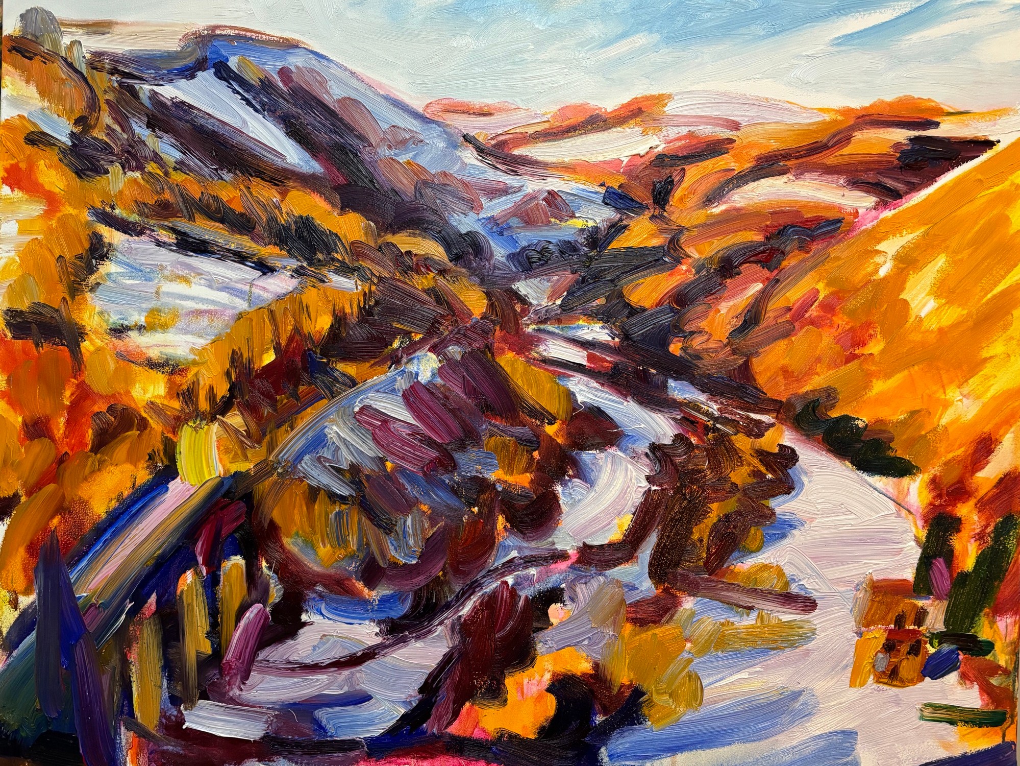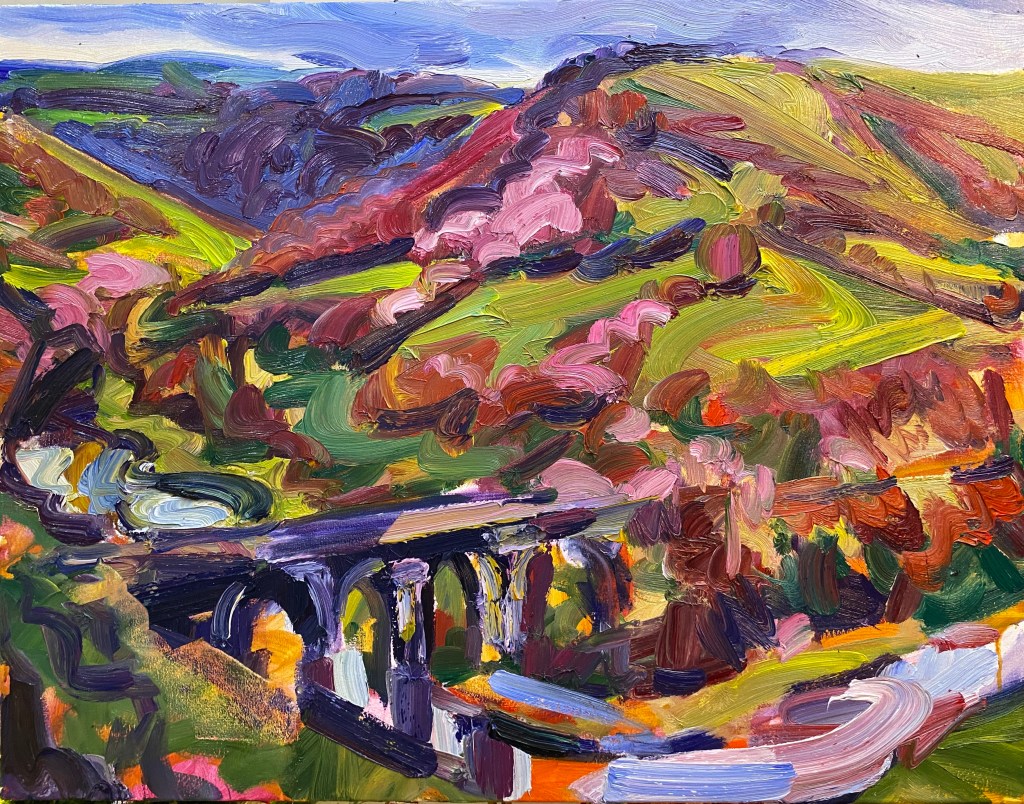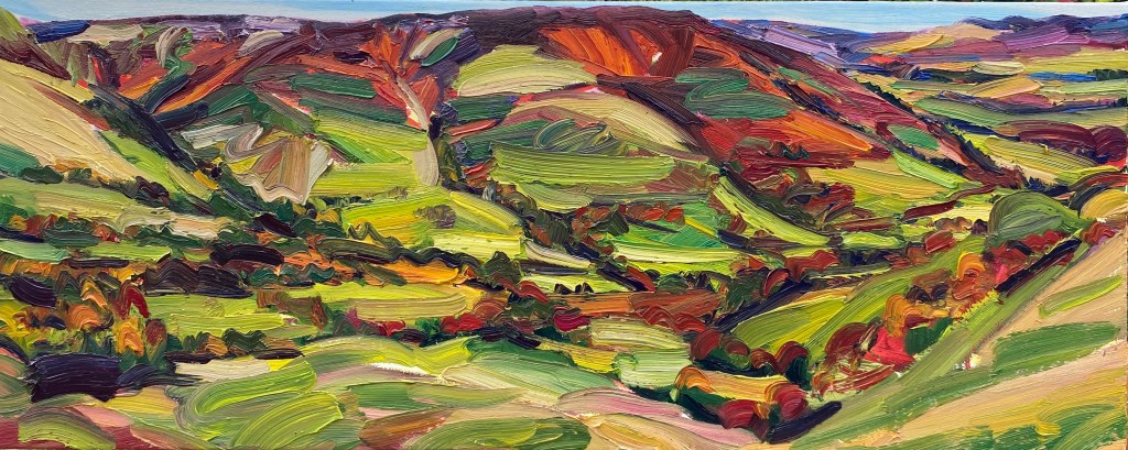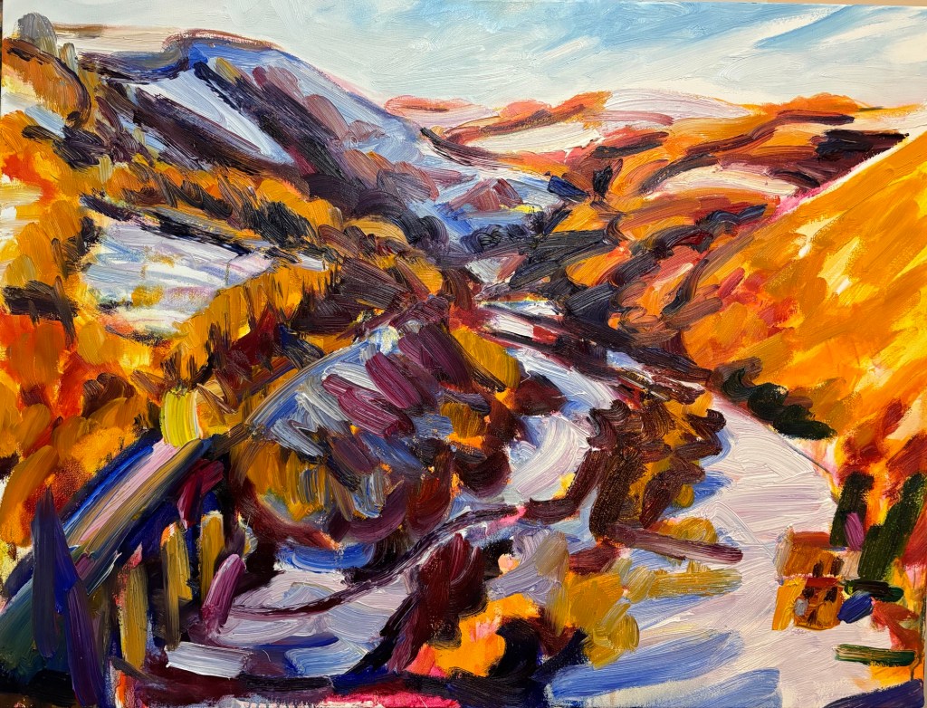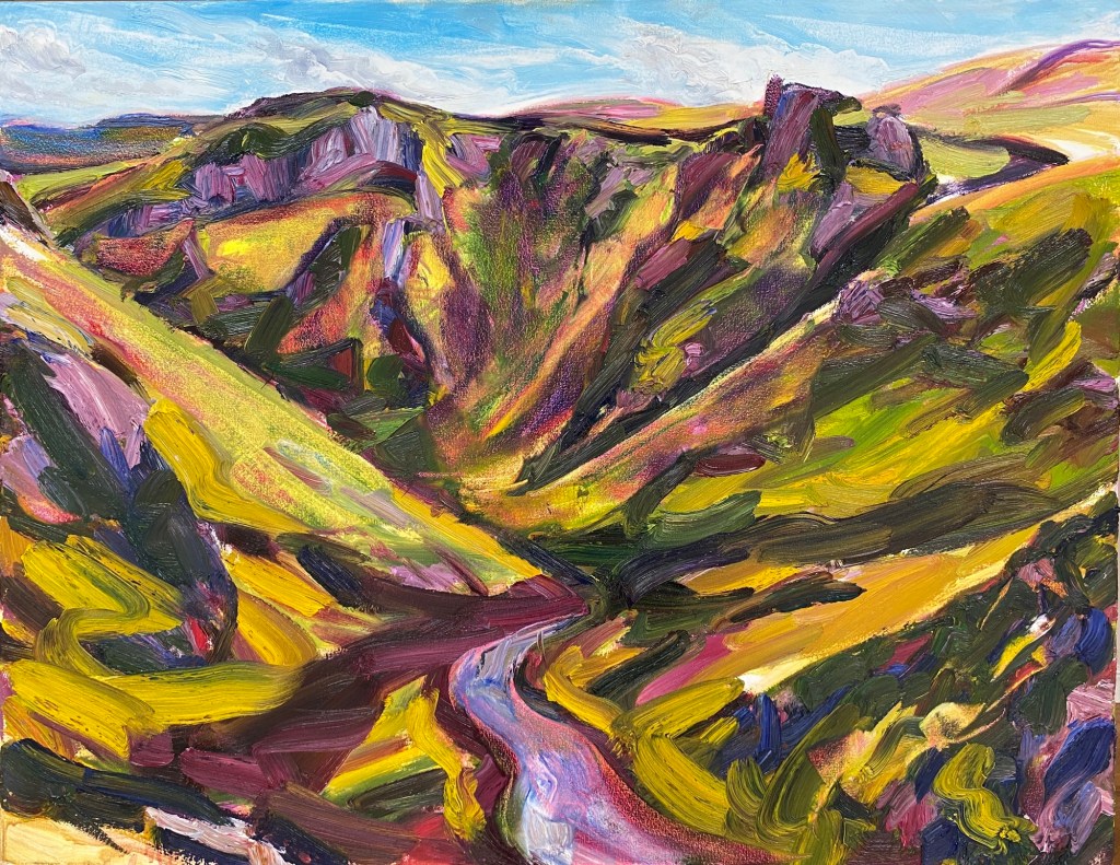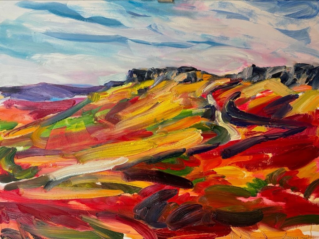 ‘Winnats Pass towards Hope Valley’, oil on Loxley Mayfair canvas, 100cm x 76cm, 28/11/24. Private collection ‘Monsal Head after Snow’, oil on Loxley Mayfair canvas, 100cm x 76cm, 21/11/24. ‘Stanage Edge from Balcony Cave’, oil on Loxley Mayfair canvas, 90cm x 70, 14/11/24.‘Curbar Village from The Edge’, oil on canvas, 70cm x 90cm, 25/10/24 ‘Chatsworth framed with Autumn Leaves’, oil on canvas, 62cm x 91cm. 17/10/24‘Stanage from Black Hawk Bay’ oil on canvas, 91cm x 61cm. 10/10/24‘Millstones, Stanage’, oil on canvas, 101cm x 76cm, 28/09/2024. Private collection, New York.‘Millstones, Stanage Edge’, oil on canvas, 101cm x 76cm, 19/09/2024. Private collection‘Heather before Stanage Edge’, oil on canvas, 100cm x 76cm. 21/08/2024 Private collection. ‘Calver from Curbar Edge’, oil on canvas, 90cm x 70cm, 09/08/2024 Private collection. ‘Hope Valley from Bamford Edge’, oil on canvas, 70cm x 90cm, 23/02/2023 Private collection.‘Stanage Edge from Upper Burbage’, oil on canvas, 100cm x 76cm. 8/7/24. Private collection‘Curbar Edge’, oil on canvas, 70cm x 90cm, 15/04/2023 Private collection‘Baslow Edge from Curbar Edge, oil on canvas, 90cm x 60cm. 1/7/24 Private collection‘Chatsworth and the Derwent’, oil on canvas, 70cm x 90cm. 19/05/2023.‘Hope Valley from Stanage’, oil on canvas, 70cm x 90cm. 31/05/2023 private collection.‘Potting Shed at Hopton Hall’, oil on canvas, 80cm x 60cm. 01/07/2023. Private collection.‘Towards Hathersage from Stanage’. Oil on canvas, 70cm x 90cm. Private collection.‘Hope Valley from Stanage’, oil on canvas, 70cm x 90cm. 29/08/2023. Private collection.‘Slippery Stones, Padley Gorge’ oil on quadruple gesso primed Loxley Mayfair canvas. 50cm x 100cm, 11!09/2023‘Winnats Pass’, oil on canvas, 81cm x 61cm, 25/09/2023.‘Walkers on Stanage’, ink and acrylic on Canson watercolour paper. 150cm x 250cm. 02/10/2023‘Towards Hathersage from Stanage’, oil on canvas, 81cm x 61cm, 09/10/23 private collection‘Edale’, oil on canvas, 100cm x 40cm, 16/10/23 private collection‘Stanage Edge’, oil on canvas, 91cm x 71cm. 6/11/23 Private collection‘Stanage towards Hope Valley’, oil on canvas, 71cm x 91cm. 20/11/23. Private collection. ‘Monsal Head’, oil on canvas, 91cm x 71cm, 11/12/23 Private collection‘Monsal Head No.3’, oil on canvas, 71cm x 91cm, 19/02/24. Private collection. ‘Ladybower Reservoir from Bamford Edge’, 71cm x 91cm, 01/03/24 Private collection‘Winnats Pass’, oil on canvas, 71cm x 91cm, 4/3/24‘Bridge into Bakewell’, oil on canvas, 71cm x 91cm. 18/03/24.‘Baslow Edge from Curbar’, oil on canvas, 120cm x 30cm. 29/04/24 Private collection ‘Edale and Kinder’, oil on canvas, 100cm x 76cm. 13/05/2024‘Hope Valley from Stanage’, oil on canvas, 90cm x 70cm. 03/06/2024.‘From Stanage towards Mam Tor’ oil paint on canvas, 90cm x 70cm, 24/06/24. Private collection.