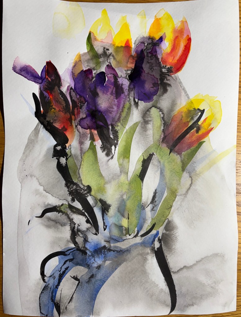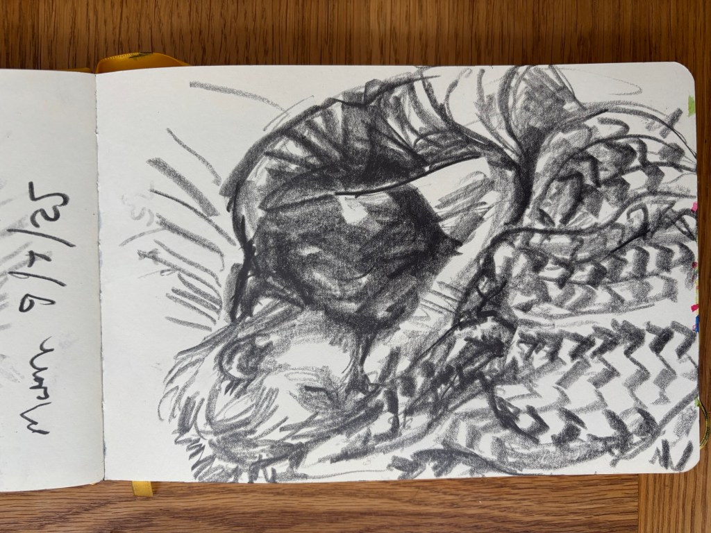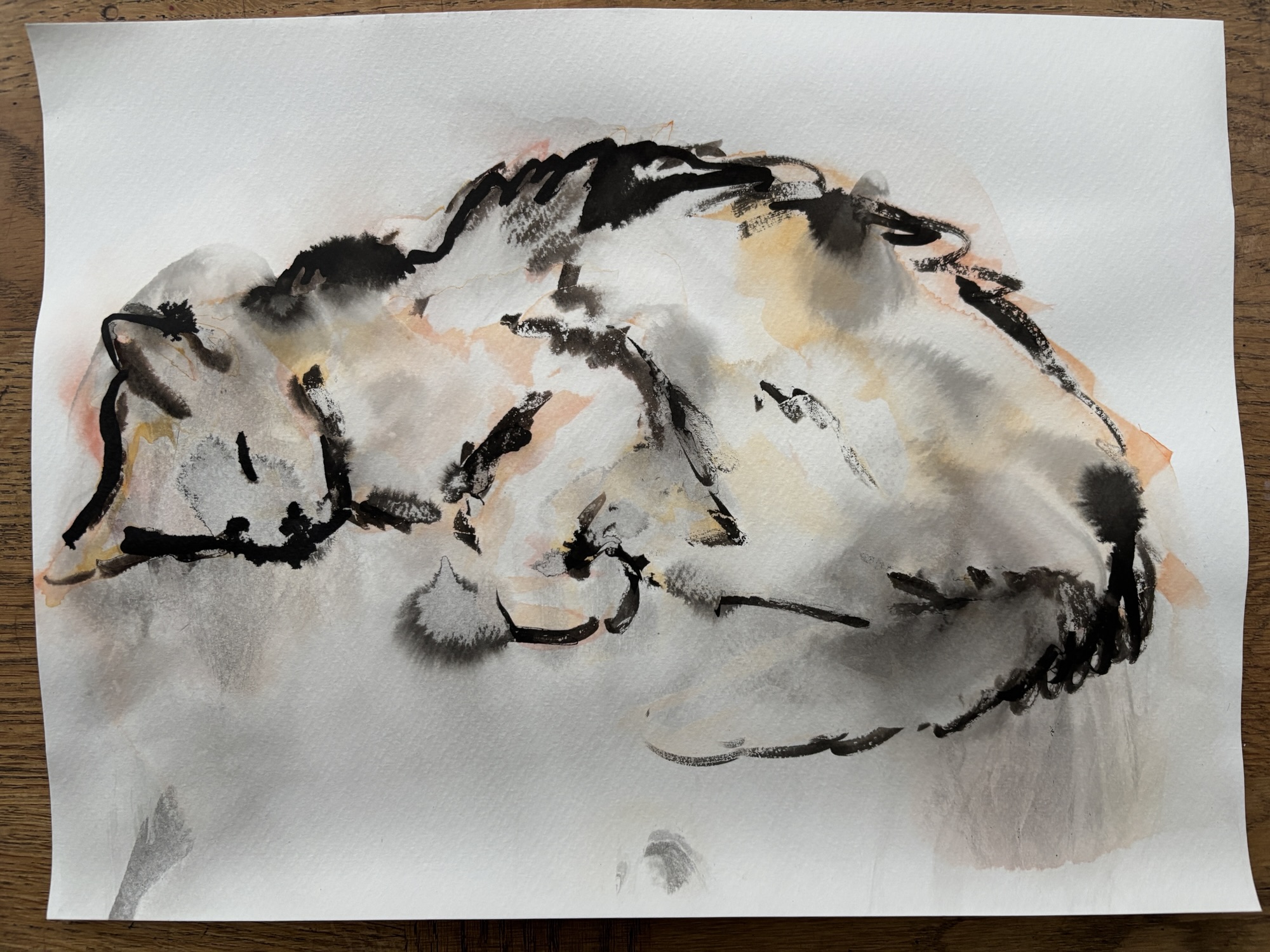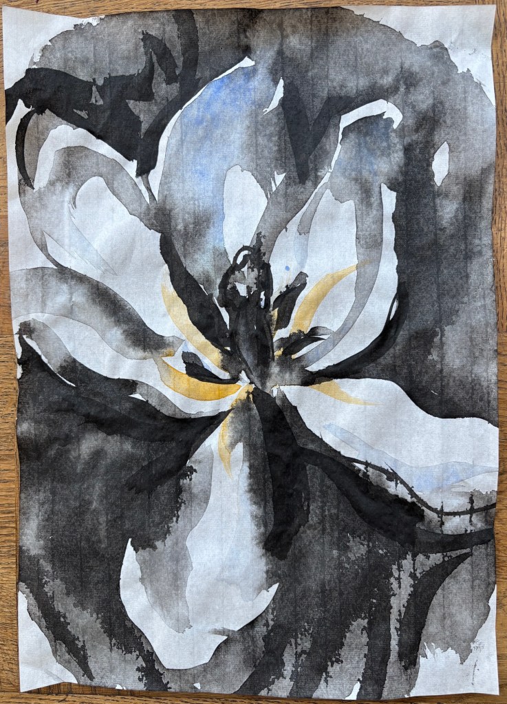 ‘Last Pictures of Milo’, ink and watercolour on 200gsm Goldline watercolour paper, 24cm x 32cm. 15/02/25‘Jug of Tulips’, ink and watercolour on Clairefontaine 300gsm paper. 24cm x 32cm, 10/02/25‘Flowers for Mum’, ink and watercolour on Daler Rowney 300gsm paper. 30cm x 21cm. 28/01/25‘Flowers for Mum’, ink and watercolour on Daler Rowney 300gsm paper. 30cm x 21cm. 28/01/25‘Flowers for Mum’, ink and watercolour on Daler Rowney 300gsm paper. 30cm x 21cm. 28/01/25‘Winnats Pass’, ink on Fabriano 300gsm paper, 150cm x 250cm, 24/04/25‘Wilting Flowers’, ink and watercolour on Chinese rice paper, 35cm x 137cm, 22/04/2025.‘Wilting Flowers’, ink and watercolour on Chinese rice paper, 35cm x 137cm, 22/04/2025.‘Live Tulip’, ink and watercolour on Chinese rice paper, A4, 27/04/25‘Live Tulip’, ink and watercolour on Chinese rice paper, A4, 27/04/25‘Mum’, graphite on Chinese rice paper, 25cm x 35cm, 29/05/25‘Mum’, graphite in A5 sketchbook, 09/07/25‘Mum’, graphite in A5 sketchbook, 09/07/25‘Mum in Bunkers Hill’, watercolour in A5 sketchbook, 26/08/25‘Drawing Mum’, ink on A5 sketchbook, 22/09/29‘Scented Stocks’, ink on Chinese rice paper, 25cm x 35cm, 25/05/25‘Peonies’, ink on Chinese rice paper, 25cm x 35cm, 25/05/25‘Sheffield Cathedral’, watercolour and ink on Windsor & Newton 300gsm paper. 41cm x 51cm, 23/09/25‘Inside the Hayes’, graphite on paper, 21cm x 30cm, 20/11/25