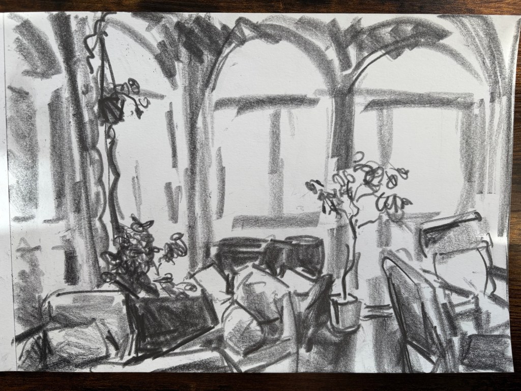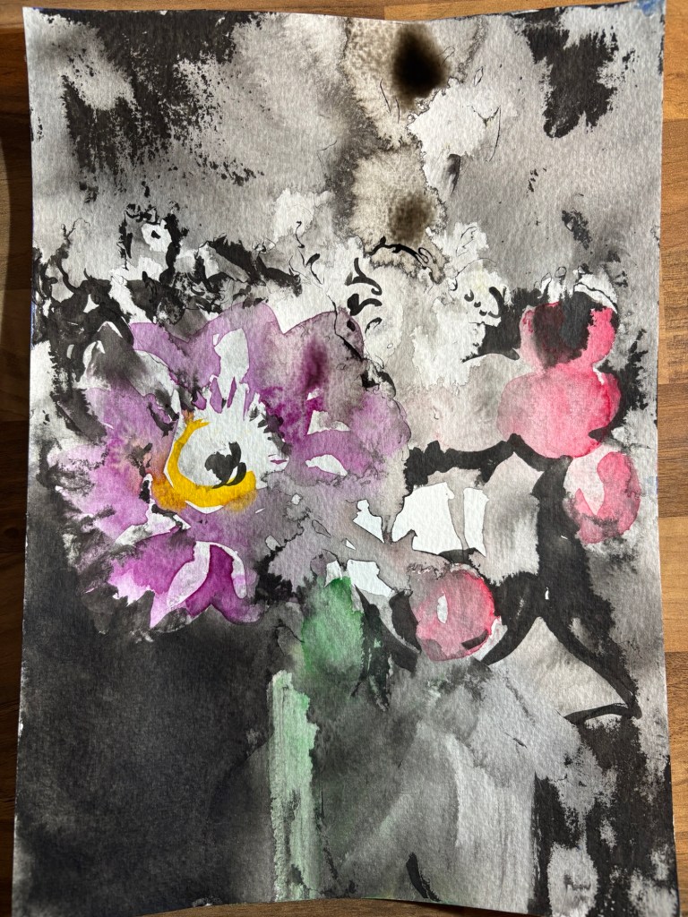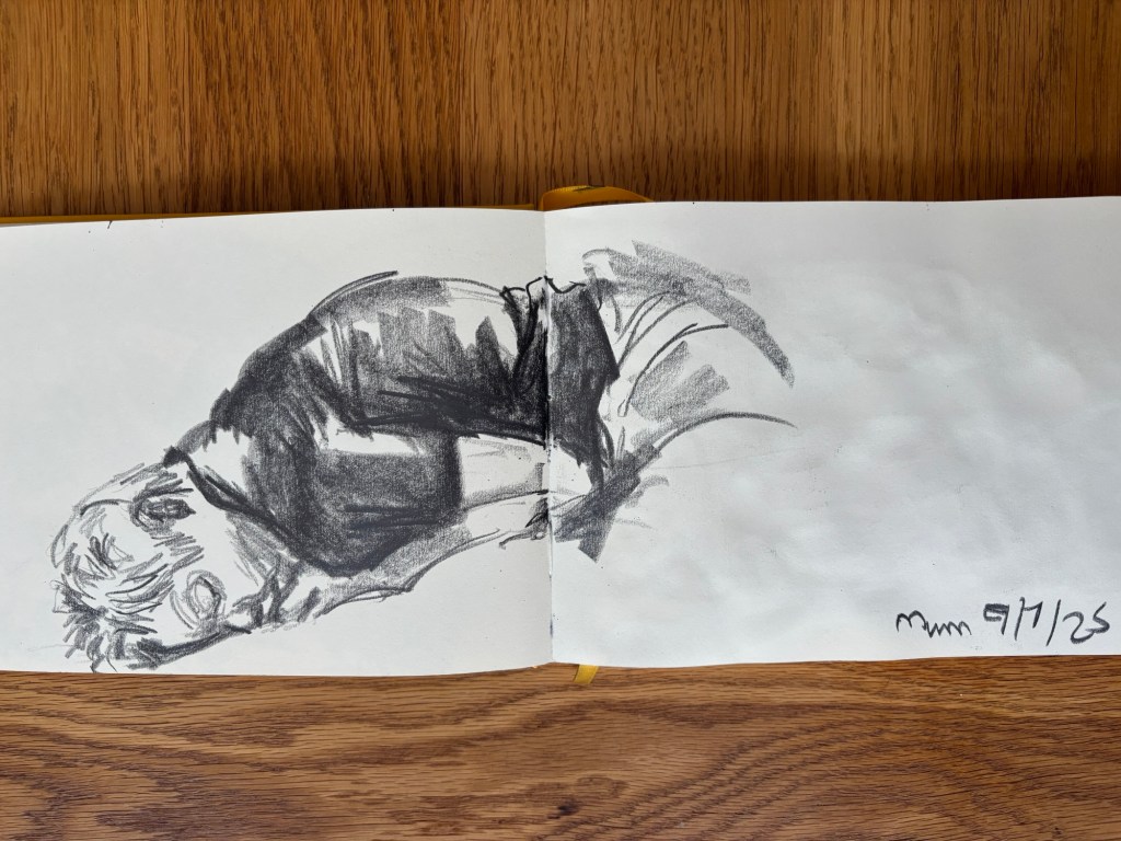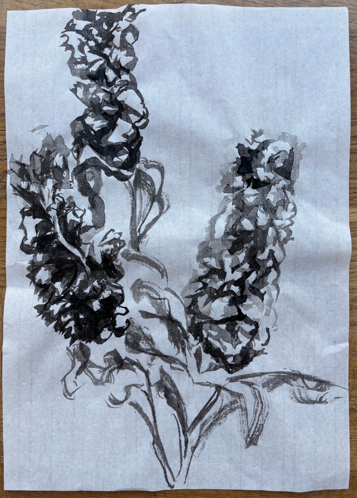 ‘Last Pictures of Milo’, ink and watercolour on 200gsm Goldline watercolour paper, 24cm x 32cm. 15/02/25‘Jug of Tulips’, ink and watercolour on Clairefontaine 300gsm paper. 24cm x 32cm, 10/02/25‘Flowers for Mum’, ink and watercolour on Daler Rowney 300gsm paper. 30cm x 21cm. 28/01/25‘Flowers for Mum’, ink and watercolour on Daler Rowney 300gsm paper. 30cm x 21cm. 28/01/25‘Flowers for Mum’, ink and watercolour on Daler Rowney 300gsm paper. 30cm x 21cm. 28/01/25‘Winnats Pass’, ink on Fabriano 300gsm paper, 150cm x 250cm, 24/04/25‘Wilting Flowers’, ink and watercolour on Chinese rice paper, 35cm x 137cm, 22/04/2025.‘Wilting Flowers’, ink and watercolour on Chinese rice paper, 35cm x 137cm, 22/04/2025.‘Live Tulip’, ink and watercolour on Chinese rice paper, A4, 27/04/25‘Live Tulip’, ink and watercolour on Chinese rice paper, A4, 27/04/25‘Mum’, graphite on Chinese rice paper, 25cm x 35cm, 29/05/25‘Mum’, graphite in A5 sketchbook, 09/07/25‘Mum’, graphite in A5 sketchbook, 09/07/25‘Mum in Bunkers Hill’, watercolour in A5 sketchbook, 26/08/25‘Drawing Mum’, ink on A5 sketchbook, 22/09/29‘Scented Stocks’, ink on Chinese rice paper, 25cm x 35cm, 25/05/25‘Peonies’, ink on Chinese rice paper, 25cm x 35cm, 25/05/25‘Sheffield Cathedral’, watercolour and ink on Windsor & Newton 300gsm paper. 41cm x 51cm, 23/09/25‘Inside the Hayes’, graphite on paper, 21cm x 30cm, 20/11/25
