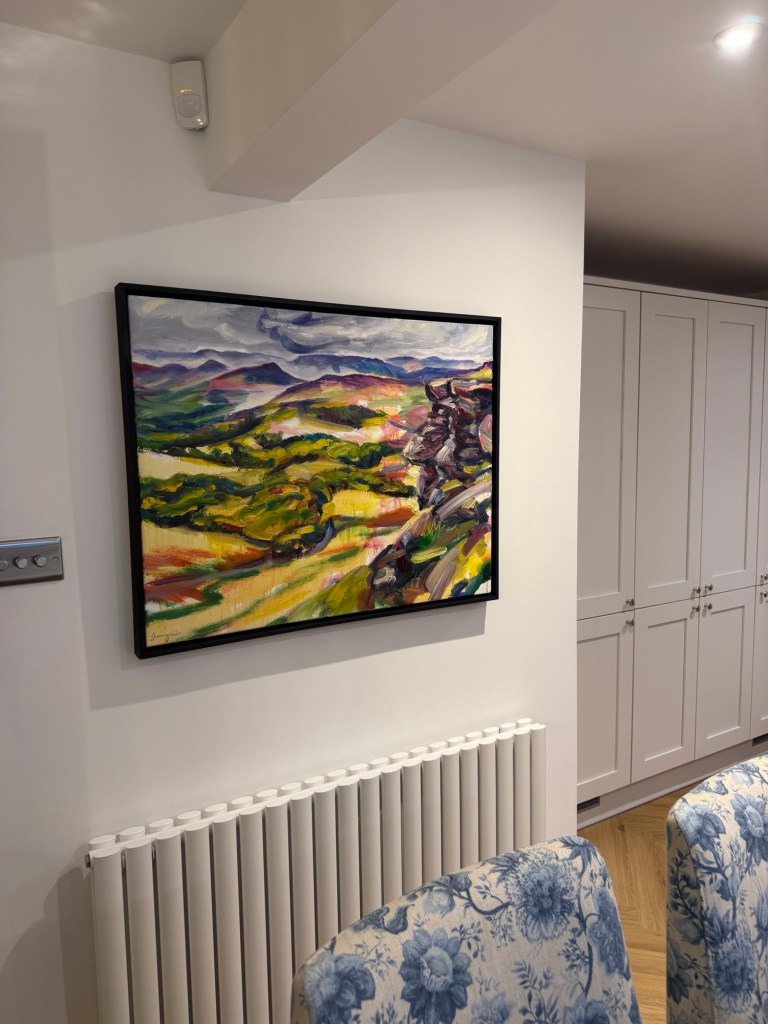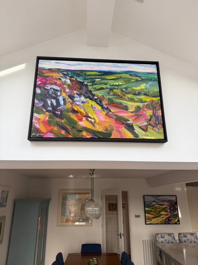 ‘Winnats Pass’, oil on canvas, 90cm x 122cm, 23/07/25 Collection of Rachel and Jack Hewitt ‘Winnats Pass’, oil on canvas, 90cm x 122cm, 23/07/25 Collection of Rachel and Jack Hewitt‘Winnats Pass’, oil on canvas, 90cm x 122cm, 23/07/25 Collection of Rachel and Jack Hewitt: “My partner and I were immediately drawn to Craig’s work as we walked around an art fair. The photographs simply don’t capture how bold and vibrant his paintings are in person. We were looking for something slightly larger than his usual canvas size, so we commissioned a custom piece. Without a specific location in mind, we gave Craig a general brief – and he delivered perfectly. The finished painting now hangs in our kitchen – diner, where it complements the space beautifully.” ‘A Bell is a Cup until it is Struck’, Bloc Projects, Sheffield, 18th – 22nd February 2025‘Stanage Edge from Hollin Bank’, oil on canvas, 70cm x 90cm, 03/07/25. Private collection of Alison and Adam Thornton. ‘Winnats Pass towards Hope Valley’ oil on canvas, 100cm x 76cm, 28/11/24. Collection of Alison and Adam Thornton. DOA Exhibition, Coal Aston Village Hall, 24th – 26th May, 2025‘Millstones Path to Stanage’, oil on canvas, 30.5cm x 81cm, 16/01/2025 Collection of Steve and Emily Swords.