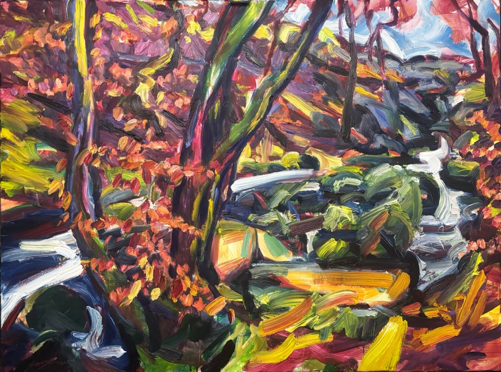 December 19, 2025December 19, 2025 Peak District 8 Plein air oil paintings created in the Derbyshire Peak District. ‘Padley Gorge’, oil on Loxley canvas, 91cm x 122cm, 17/12/25. Private collection of Craig Malcolm. Share this: Click to share on X (Opens in new window) X Click to share on Facebook (Opens in new window) Facebook Like Loading...
